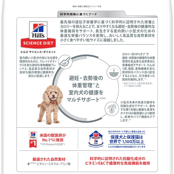 長生きする室内小型犬のための最適な栄養バランスを小粒に凝縮。