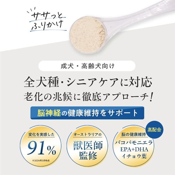 バコパ・モンニエリやイチョウなどの成分を摂取することで愛犬の健康を維持し、脳や認知機能の健康維持に役立ちます。