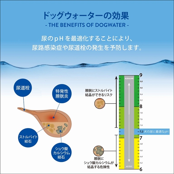 ・尿のpHを最適化することにより、尿路感染症や尿道栓の発生を予防します。