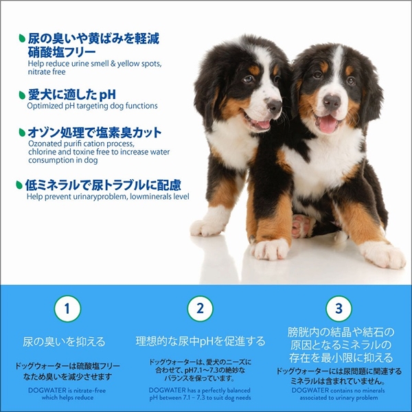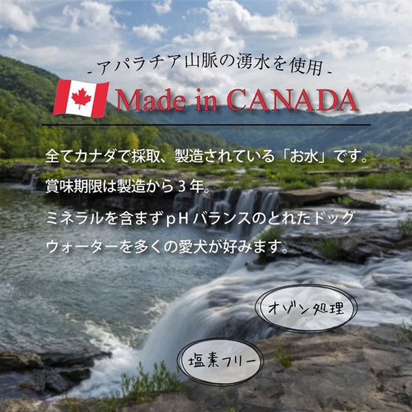 ・低ミネラルでpHバランス(7.2)のとれたドッグウォーターを多くの愛犬が好みます。