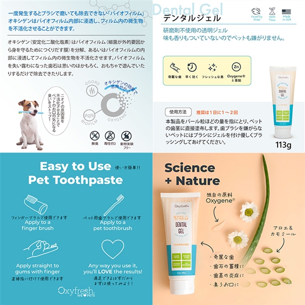 お口をケアする独自成分「オキシゲン」を配合した デンタルジェル 犬猫用です。