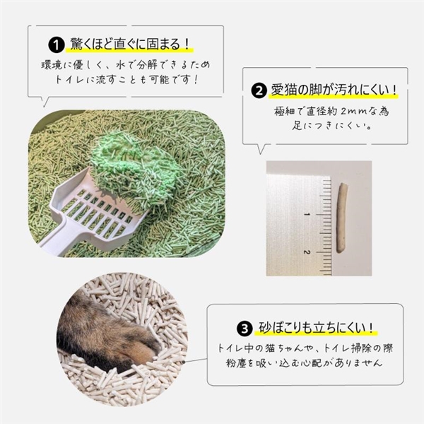 ・砂ぼこりも立ちにくい(トイレ中の猫ちゃんや、トイレ掃除の際、粉塵を吸い込む心配がありません)