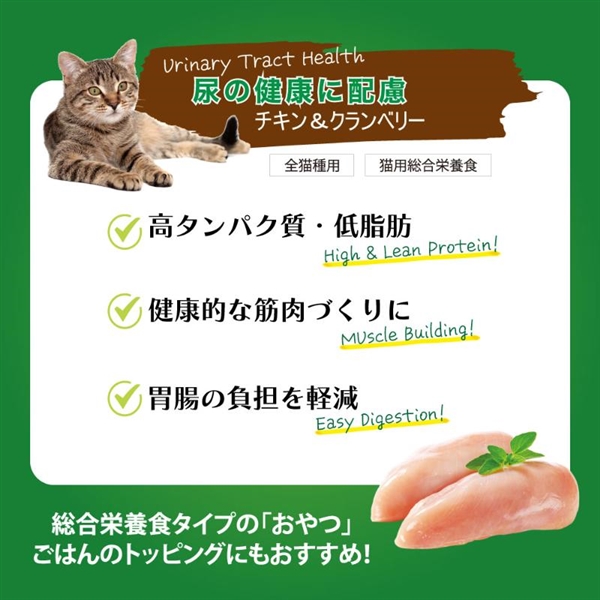 チキン、ヤギミルク、タピオカ澱粉、ナチュラルフレーバー、クランベリー、フラクトオリゴ糖、タウリン、ビタミンとミネラル、全卵粉、サーモンオイル