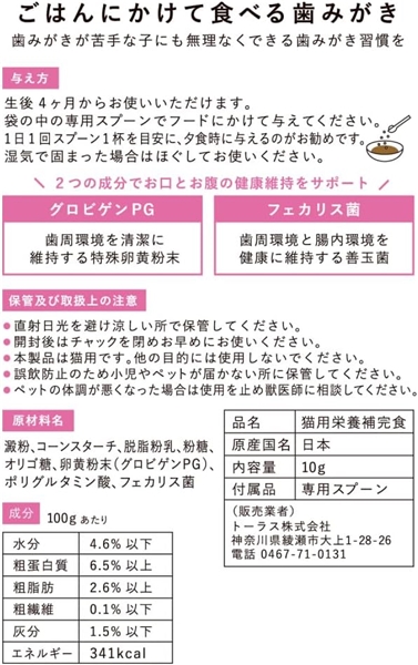 トーラス ねこおもい ごはんにかけて食べる歯みがきパウダー 愛猫用 10g