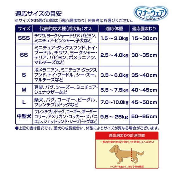 マナーウェア 長時間快適オムツ 男の子用 中型犬用 24枚入