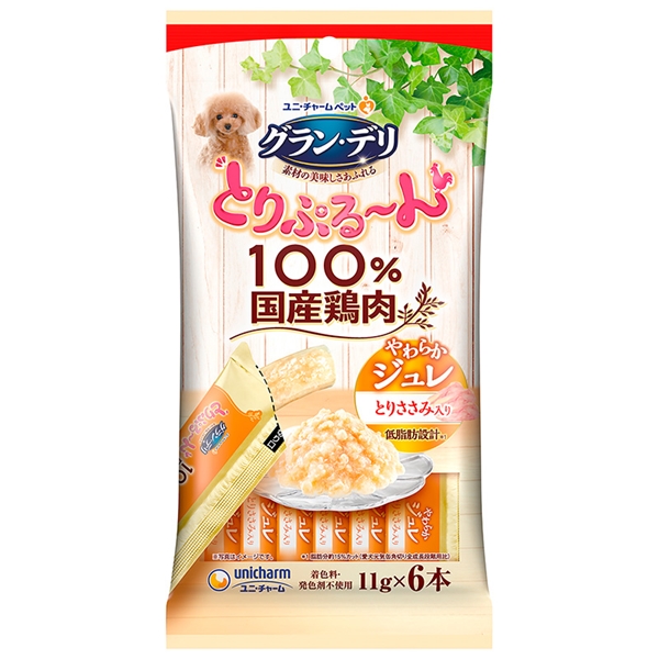 肉類(鶏胸肉、ささみ)、動物性油脂、寒天、調味料、増粘多糖類、乳酸カルシウム