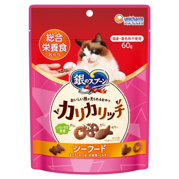 肉類(ビーフミール、チキンエキス、チキンミール、ポークミール)、穀類(小麦粉、米粉、パン粉、トウモロコシ、コーングルテンミール、麦芽粉末)、油脂類、豆類(大豆エキス)、ビール酵母、セルロースパウダー、魚介類(フィッシュエキス、まぐろミール、かつおミール、白身魚ミール、乾燥シラス、ホタテパウダー)、野菜類(ビートパルプ)、酵母エキス、糖類、ミネラル類(カルシウム、塩素、コバルト、銅、鉄、ヨウ素、カリウム、マンガン、ナトリウム、リン、亜鉛)、調味料、アミノ酸類(タウリン、メチオニン)、ビタミン類(A、B1、B2、B6、B12、C、D、E、K、コリン、ナイアシン、パントテン酸、ビオチン、葉酸)、酸化防止剤(ミックストコフェロール、ハーブエキス)