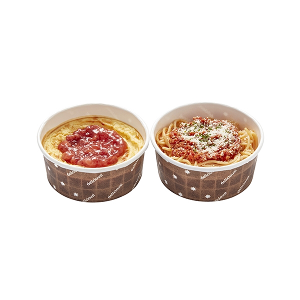 パスタ和え(国内製造)、ボロネーゼソース、チーズ、パセリ/加工デンプン、増粘剤(キサンタン)、グリシン、酢酸Na、乳化剤、酸味料、着色料(クチナシ、カラメル)、(一部に卵・乳成分・小麦・大豆・豚肉・ゼラチンを含む)  "