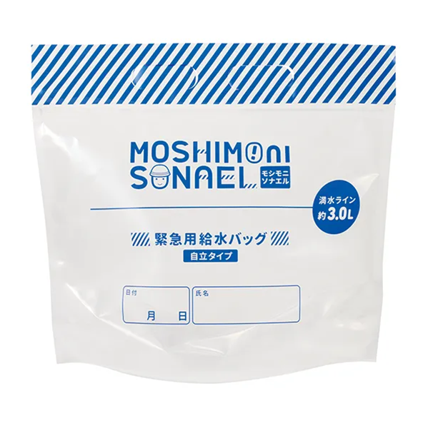 付属品 セット内容:持出袋・給水バッグ3L・LEDライト・防災ブック・アルミシート(1200×800mm)・グローブ・圧縮タオル(240×400mm)・ポリ袋×3・ホイッスル・三角巾