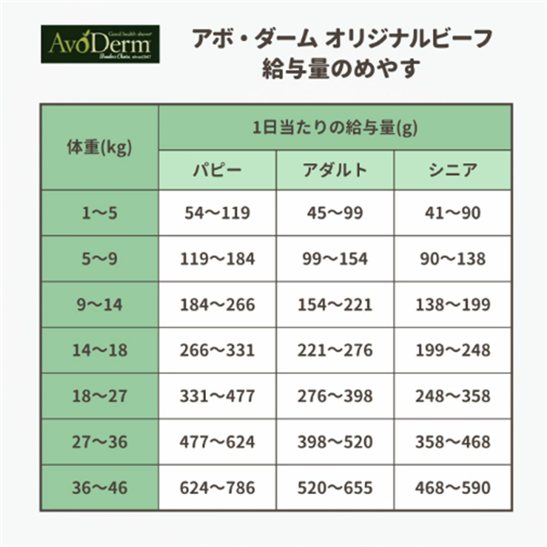 ・上記の表は標準給与量です。量は年齢、季節、犬種、運動量によって異なります。基本的には愛犬の体調に応じて与えてください。