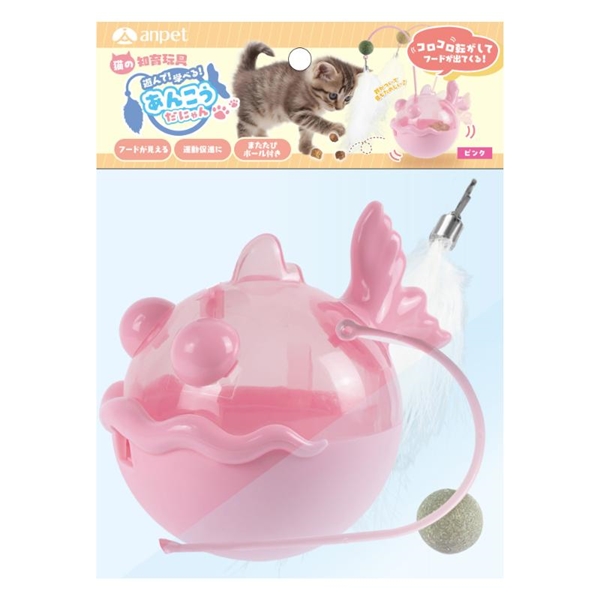 約19cm×12.5cmのコンパクトサイズで、家の中でも場所を取らずに猫が楽しく遊べます。内部に錘(おもり)が入っているため、あらゆる方向に回転・揺れたりする設計で、予測できない動きが猫の好奇心を刺激。活発な遊びを自然に促します。