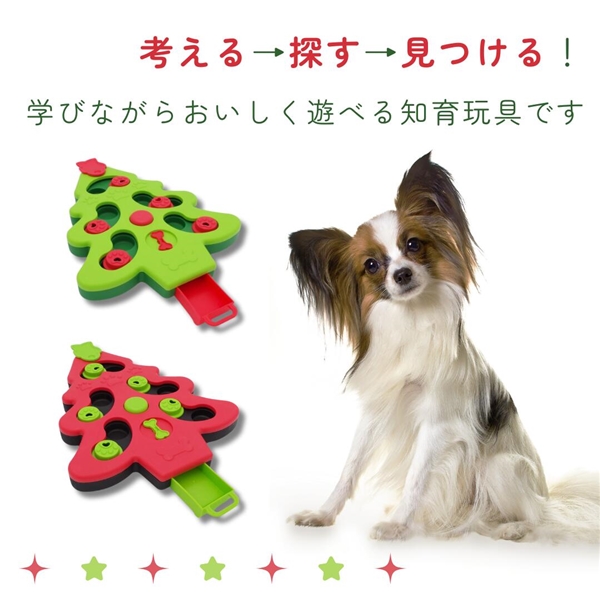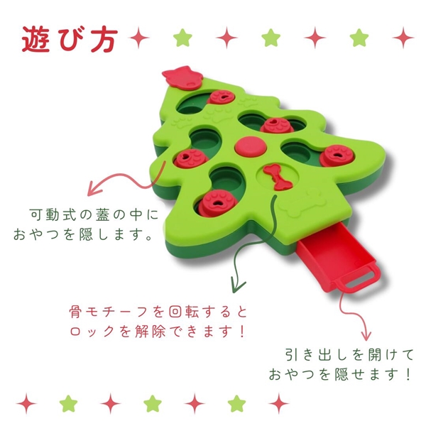 回転する骨モチーフ、引き出し式のトレイ、音が鳴るボタンなど、複数のギミックでワンちゃんの興味を長く引きつけます。