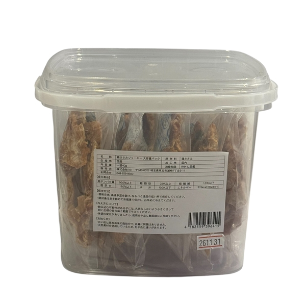 厳選した国産原料のみを使用し、安全・無添加・保存料不使用にこだわった、鶏ささみジャーキーの大容量パックです。