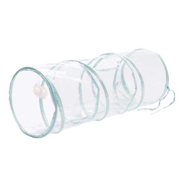 猫壱の人気おもちゃ「キャットトンネル」の透明バージョン!猫が大好きなカシャカシャのオーロラフィルムを一部採用した筒状のトンネルおもちゃです。