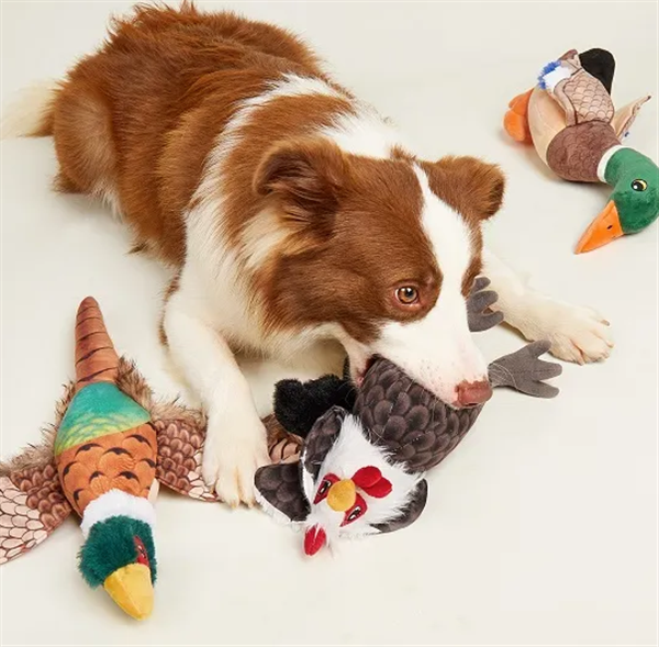 狩猟本能を刺激する、おんどりの犬用おもちゃ。
