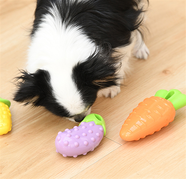壊れにくく丈夫でくわえやすいゴム製のおもちゃで、噛むと音が鳴ります。