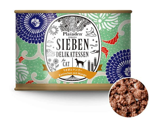 ラビット 28.2%、ラビットその他の部位 18.8%(肝臓)、ターキー 23.5%、ターキーその他の部位 23.5%(心臓、胃、首)、マンゴー 5%、キャットニップ 0.5%、有機キクイモ 0.5% ※タウリン100mg(100gあたり)