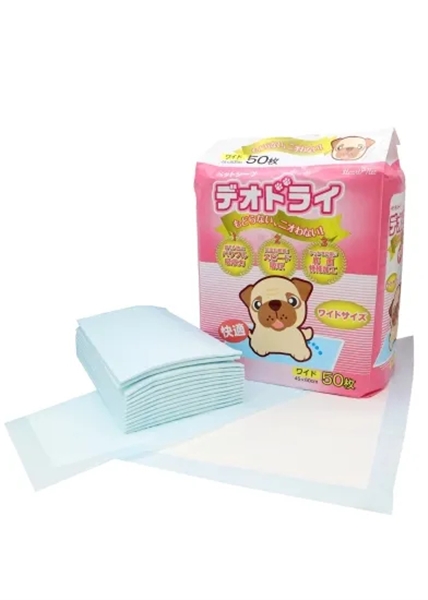 ペットシーツ「デオドライ」は高分子ポリマー配合の吸収性薄型ペットシーツです。