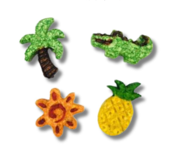 個数:4個(ヤシの木、パイナップル、太陽、ワニ)
