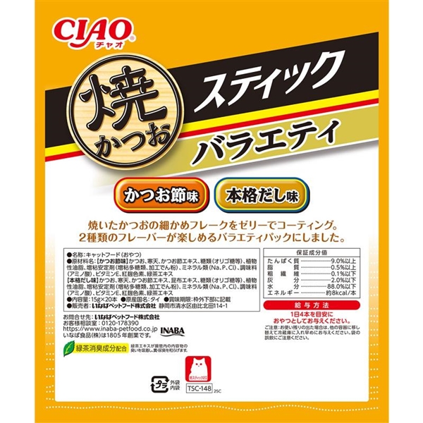 - > CIAO 焼かつおスティック バラエティ 15g×20本