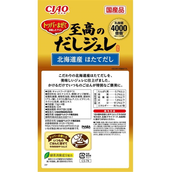 いなば 国産 CIAO チャオ 至高のだしジュレ 北海道産 ほたてだし 13g×4個