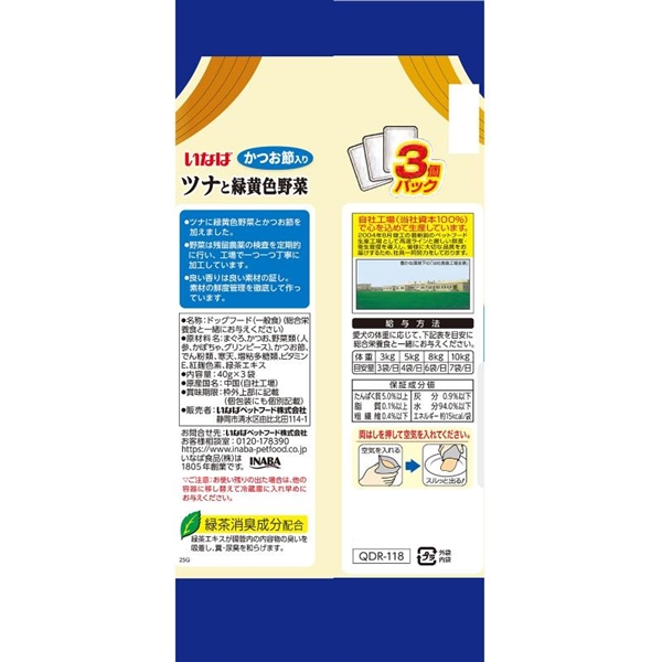 - > ツナと緑黄色野菜 かつお節入り 40g×3袋