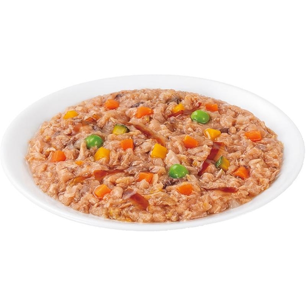 まぐろ、かつお、野菜類(人参、かぼちゃ、グリンピース)、かつお節、でん粉類、寒天、増粘多糖類、ビタミンE、紅こうじ色素、緑茶エキス