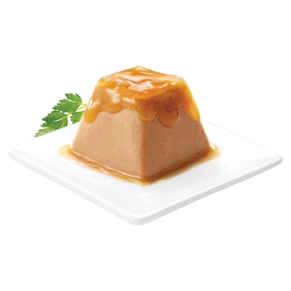 与え方は簡単。カップをつまんでお皿にポン!お皿に出した瞬間からとろりと落ちるジュレソース。