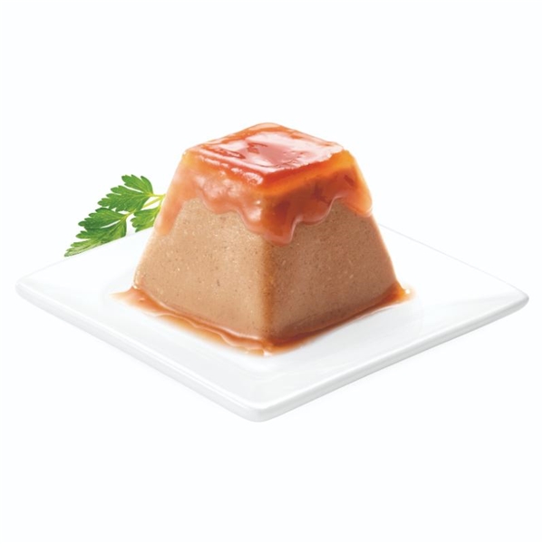与え方は簡単。カップをつまんでお皿にポン!お皿に出した瞬間からとろりと落ちるジュレソース。