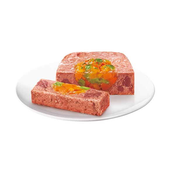 肉類(チキン、ビーフ等)、野菜類(にんじん、いんげん、パプリカ等)、ブドウ糖、ディル、ビタミン類、ミネラル類、増粘多糖類、リン酸塩(Na)、EDTA-Ca・Na、発色剤(亜硝酸Na)