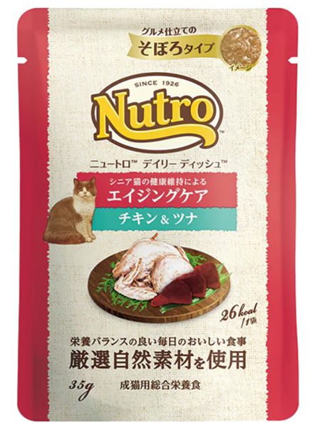 チキン、ツナ、ビーフレバー、鶏レバー、小麦、ひまわり油、グルコサミン、調味料(アミノ酸等)、ビタミン類(B1、B2、B6、B12、E、K、コリン、ナイアシン、パントテン酸、ビオチン、葉酸)、ミネラル類(Ca、Cl、Cu、Fe、I、K、Mg、Mn、Na、P、Zn)、タウリン、増粘多糖類
