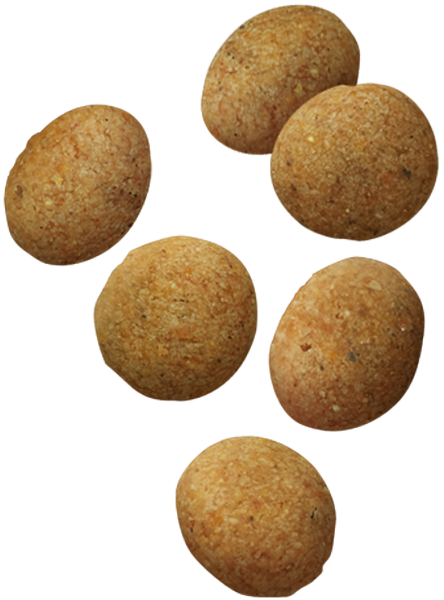穀類(とうもろこし、コーングルテンフィード)、豆類(脱脂大豆、おから)、肉類(チキンミール、ミートミール、チキンレバーパウダー)、油脂類(動物性油脂、フィッシュオイル:DHA・EPA源)、セルロース、魚介類(フィッシュミール)、糖類(フラクトオリゴ糖)、セレン酵母、ビタミン類(A、D3、E、K3、B1、B2、パントテン酸、ナイアシン、B6、葉酸、ビオチン、B12、C、コリン)、ミネラル類(カルシウム、リン、ナトリウム、カリウム、塩素、鉄、コバルト、銅、マンガン、亜鉛アミノ酸複合体、亜鉛、ヨウ素)、アミノ酸類(メチオニン、トリプトファン)、酸化防止剤(ローズマリー抽出物、ミックストコフェロール)