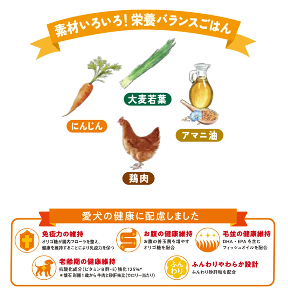 愛犬の健康に配慮して、機能性原料も配合。