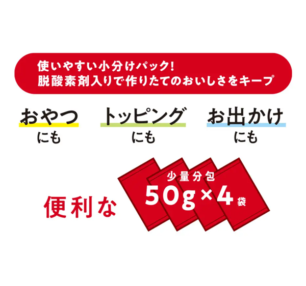 使いやすい少量分包で、持ち運びやおやつにもピッタリ。