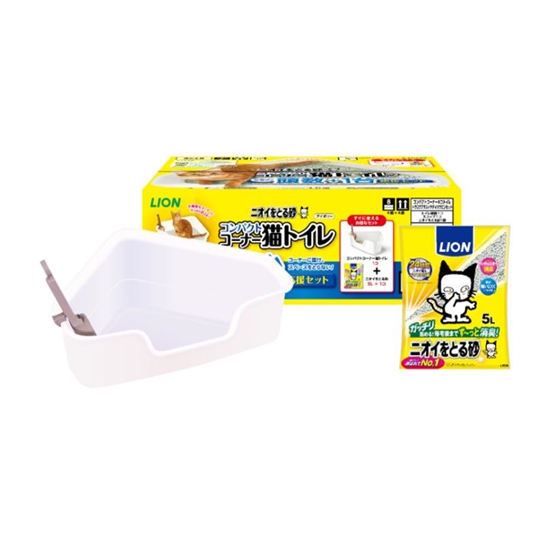 ライオン ニオイをとる砂 コンパクトコーナー猫トイレ 頭数+1台 応援セット