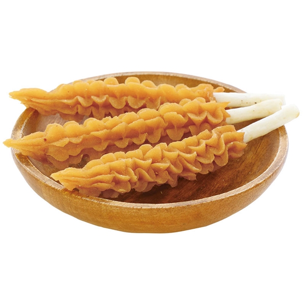 ワンちゃんの大好きな素材を「ホイップ」のように押し出した新形状スナックです。