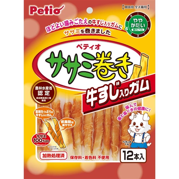 - > ペティオ ササミ巻き 牛すじ入りガム 12本入