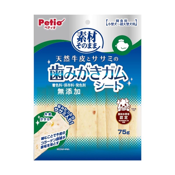 素材そのまま 天然牛皮とササミの歯みがきガム シート 75g