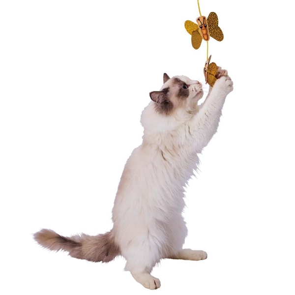 シャカシャカフィルム&キラキラ羽でネコちゃん大興奮。