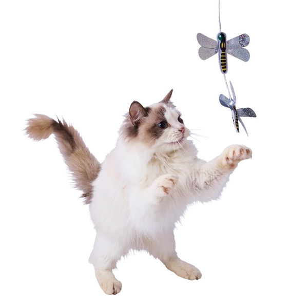 シャカシャカフィルム&キラキラ羽でネコちゃん大興奮。