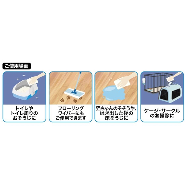 猫ちゃんのトイレ周り、そそうや吐き戻し後の床そうじ、ケージ・サークルのおそうじにも使えます。