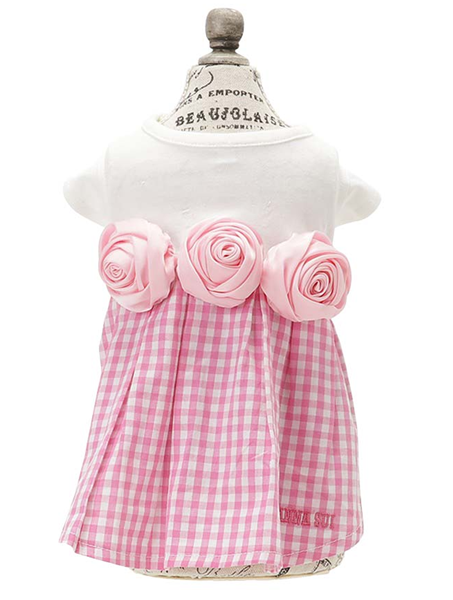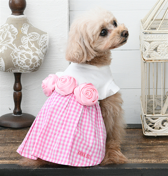 ANNA SUI (アナ スイ) バラコサージュギンガムチェックワンピ ピンク