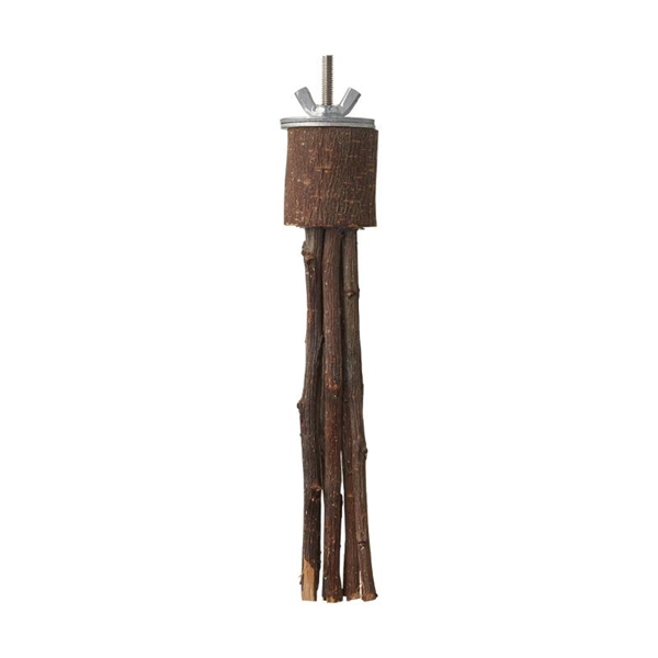小鳥がとまったり、かじったりすることができるりんごの小枝を束ねたおもちゃです。