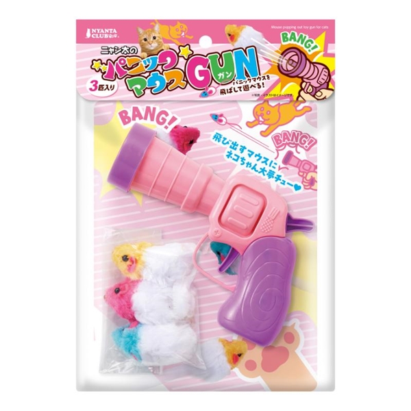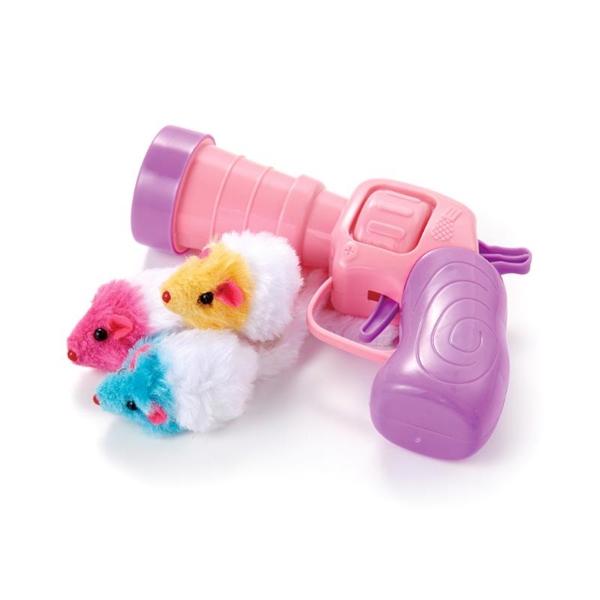 猫の狩猟本能を刺激するマウスと飼い主も操作できるピストル玩具を組み合わせた猫用おもちゃです。