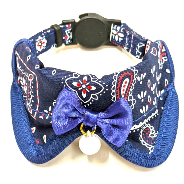 ・おしゃれなペイズリー柄のコットン製生地を使用した、大きな襟についた猫用首輪です。