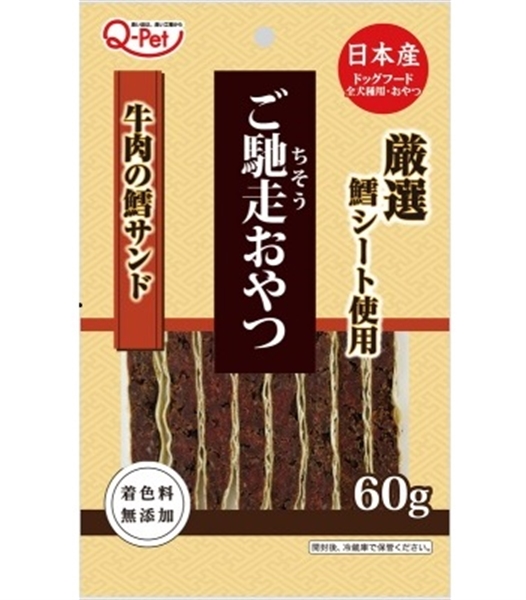 - > 九州ペットフード 日本産 ご馳走おやつ 牛肉鱈サンド 60g