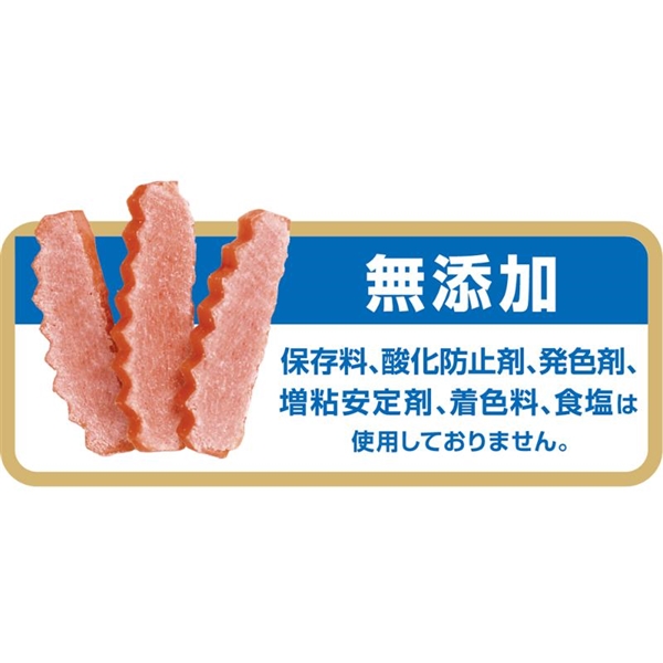 鶏ささみと鶏レバーをベースに、好みのサイズに簡単にちぎれるシニア犬用スナックです。