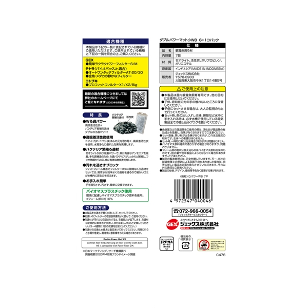 水質浄化に優れた効果を発揮する交換ろ過材です。