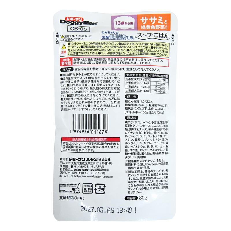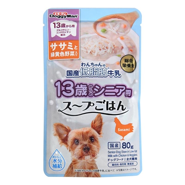 ドギーマンハヤシ わんちゃんの国産低脂肪牛乳 スープごはん ササミと緑黄色野菜入り 13歳からのシニア用 80g
