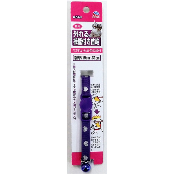 アース・ペット ターキー ねこモテ ハート柄猫首輪 紫